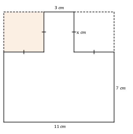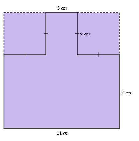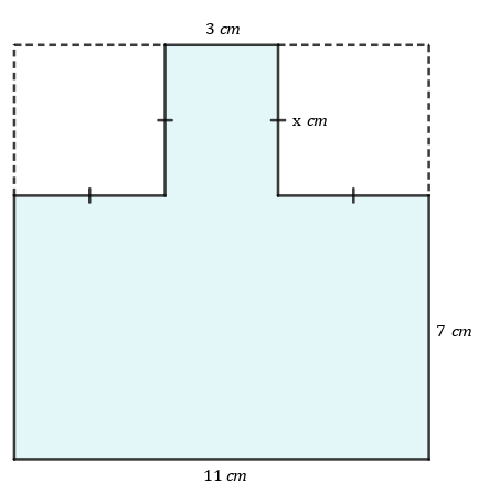 Consider the shaded area in the adjacent figure (all measurements are in cm). We can find this area by combining the areas of more simple shapes.