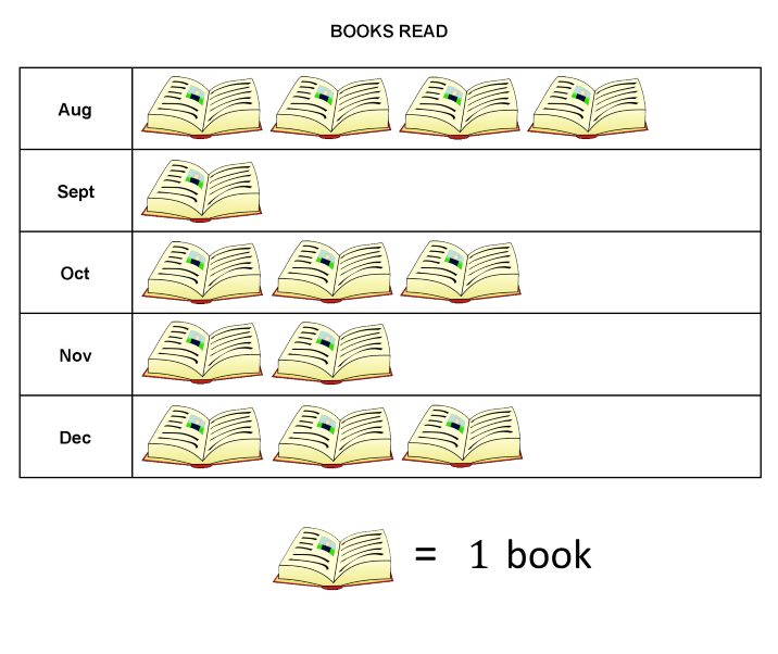 The picture graph shows the amount of hours a student spent this month doing homework for different subjects.