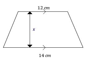 $\text{Area of a Trapezium }=\frac{1}{2}(a+b)\times height$Area of a Trapezium =12(a+b)×height