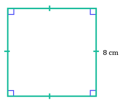 Think: We know the side length of the square, so we can use the formula to find the area. The dimension is given in cm, so the area will be in cm2.