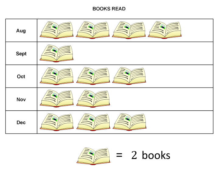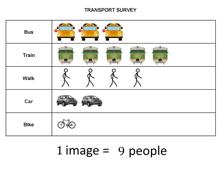 In the types of graphs we're looking at here the key is very important. The key will tell us how many numbers each picture represents.