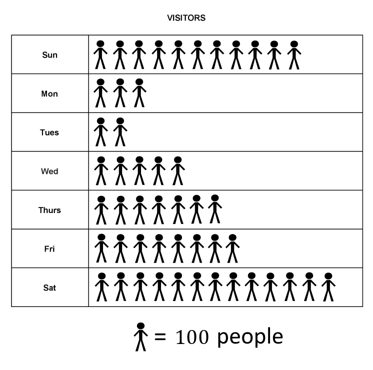 The pictograph shows the number of visitors to a theme park on each day of the week.
