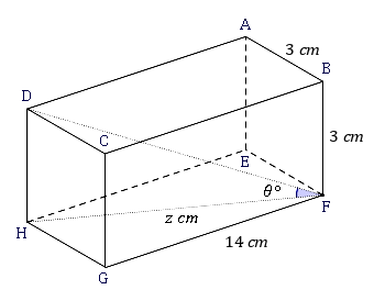 If the diagonal $HF$HF has a length of $z$z cm, calculate $z$z to two decimal places.