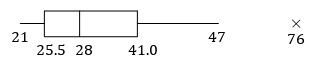 6. An outlier is a score that is more than $1.5\times IQR$1.5×IQR above or below the Upper Quartile or Lower Quartile respectively. State the outlier.