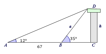Using the rounded value of the previous part, find $h$h where $h$h m the height of the tower.